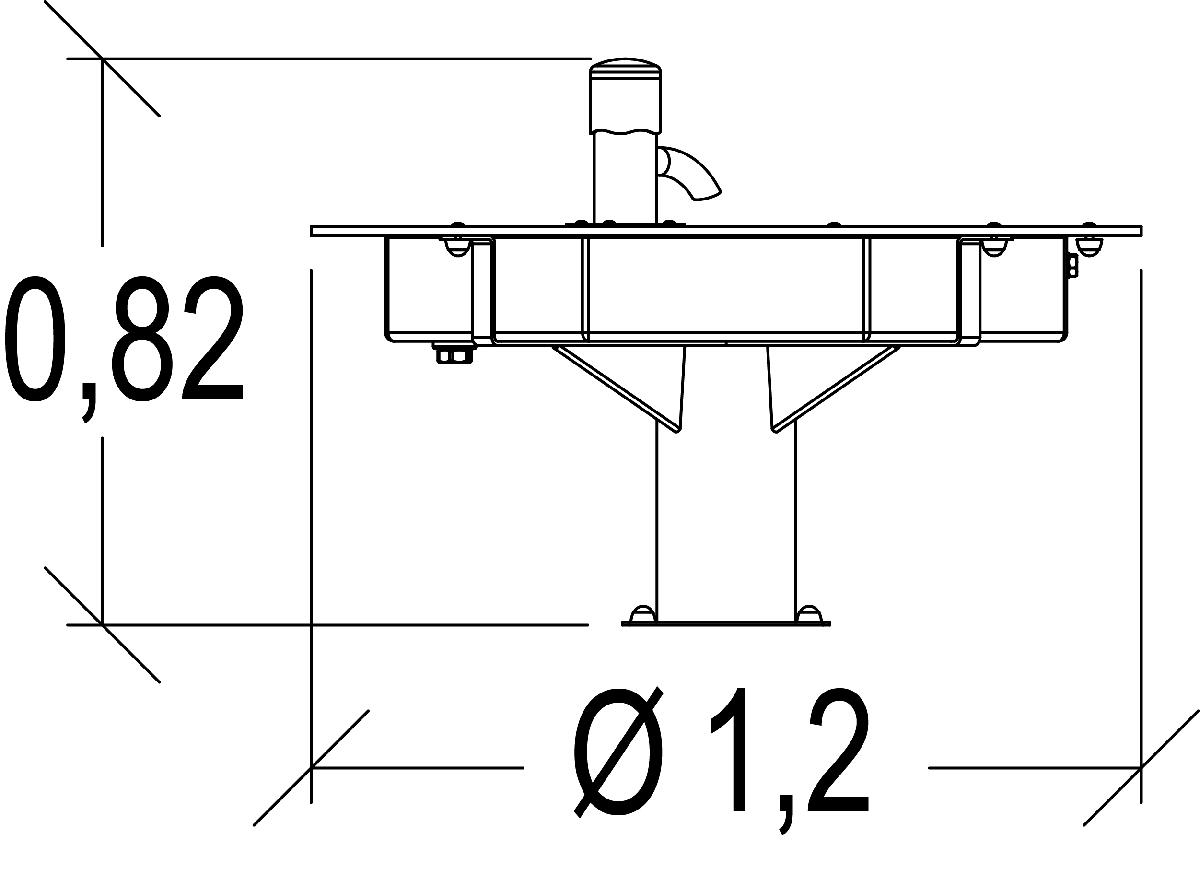 The size of the module is: 1.20 m length, 1.20 m width, 0.82 m. high.