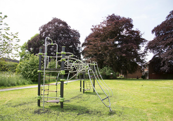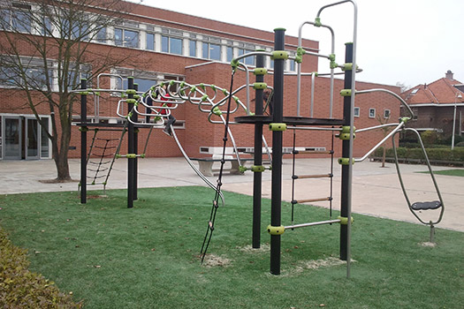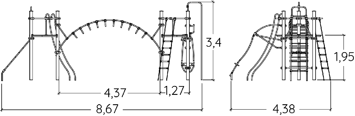 Multiplay equipment in metal with balancing activities, net ladder, and climbing activities - J2536-M