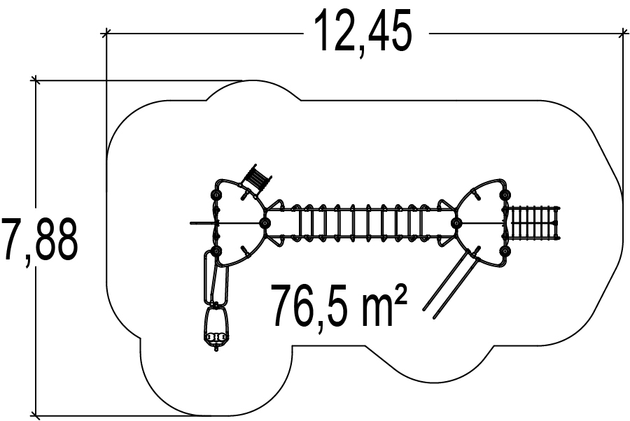 The size of the module is: 8.67 m length, 4.38 m width, 3.40 m. high. The free fall height (FFH) is 2.40 m.