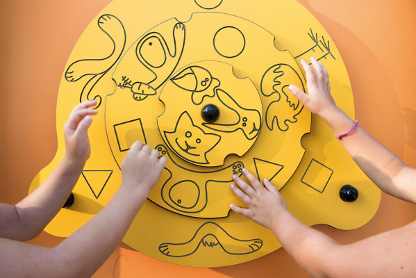 We have created the reference J3403 in our "Play panels, Audio & Musical play" range. This module is accessible from 1 year. It can accommodate up to 3 players.