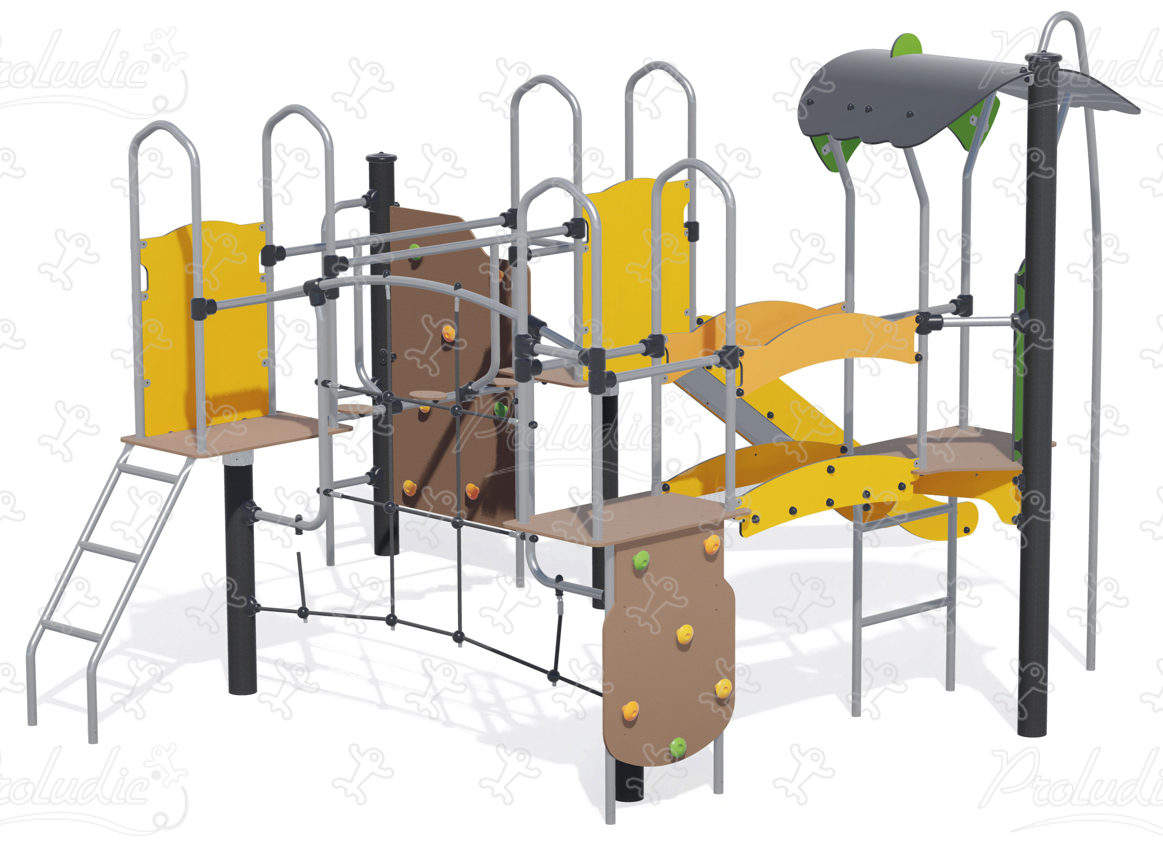 Multiplay equipment with slide, climbing wall, and climbing activities - J3875