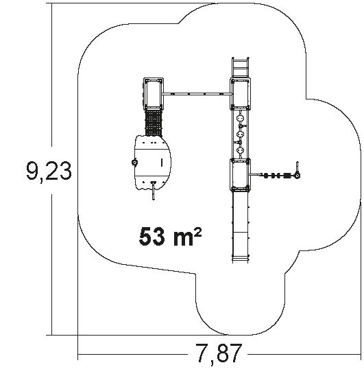 The size of the module is: 4.68 m length, 5.73 m width, 3.00 m. high. The free fall height (FFH) is 2.00 m.