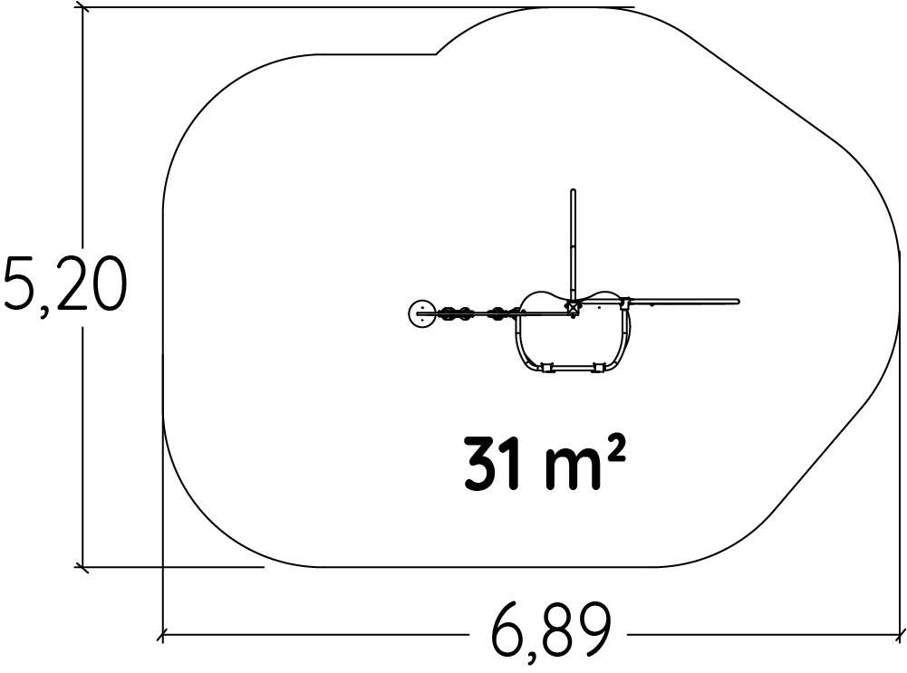 The size of the module is: 3.09 m length, 1.68 m width, 3.00 m. high. The free fall height (FFH) is 2.70 m.