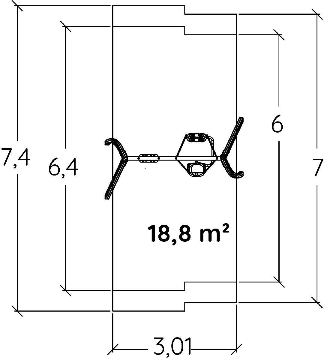 The size of the module is: 3.30 m length, 2.00 m width, 2.60 m. high. The free fall height (FFH) is 1.39 m.