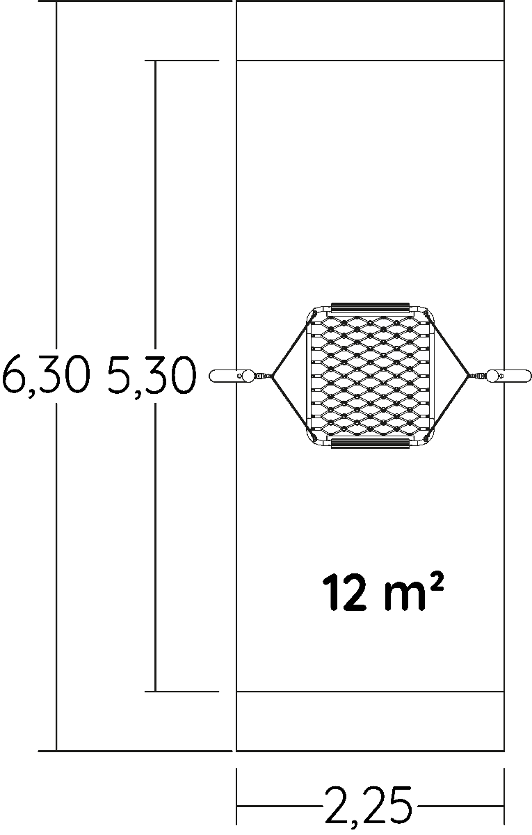 The size of the module is: 2.71 m length, 1.21 m width, 1.60 m. high. The free fall height (FFH) is 0.94 m.