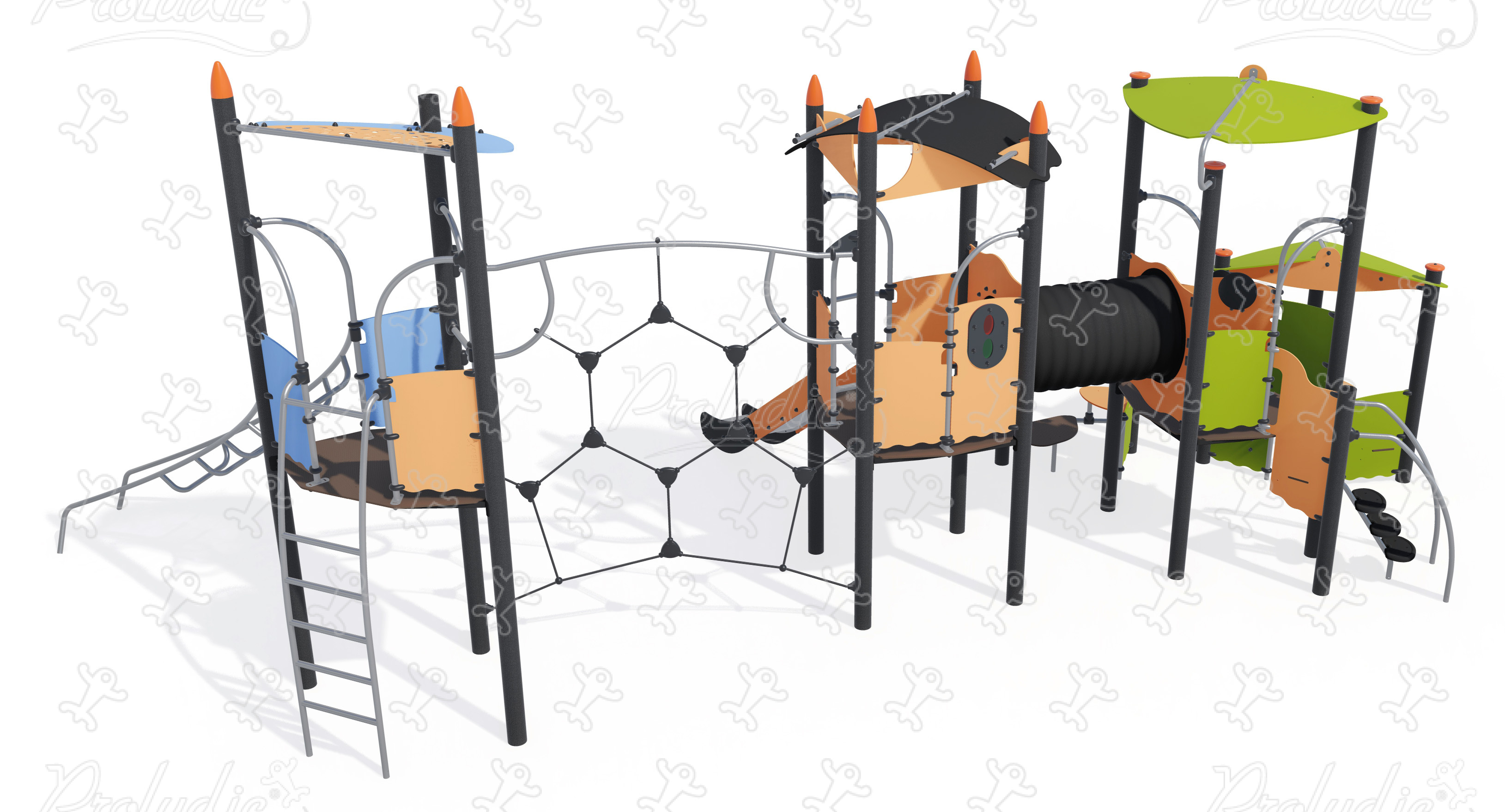 Multiplay equipment with elevated playhouse, balancing trail, climbing activities, tunnel, and slide - J45416