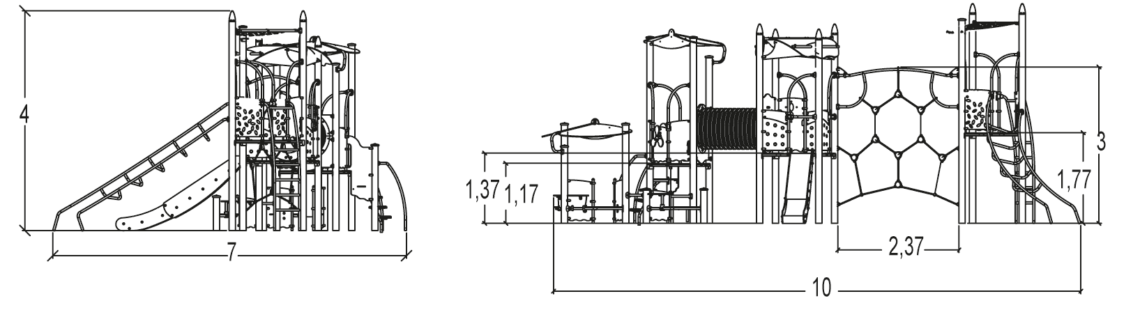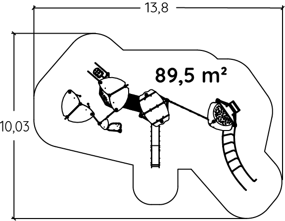 The size of the module is: 10.00 m length, 7.00 m width, 4.00 m. high. The free fall height (FFH) is 3.00 m.