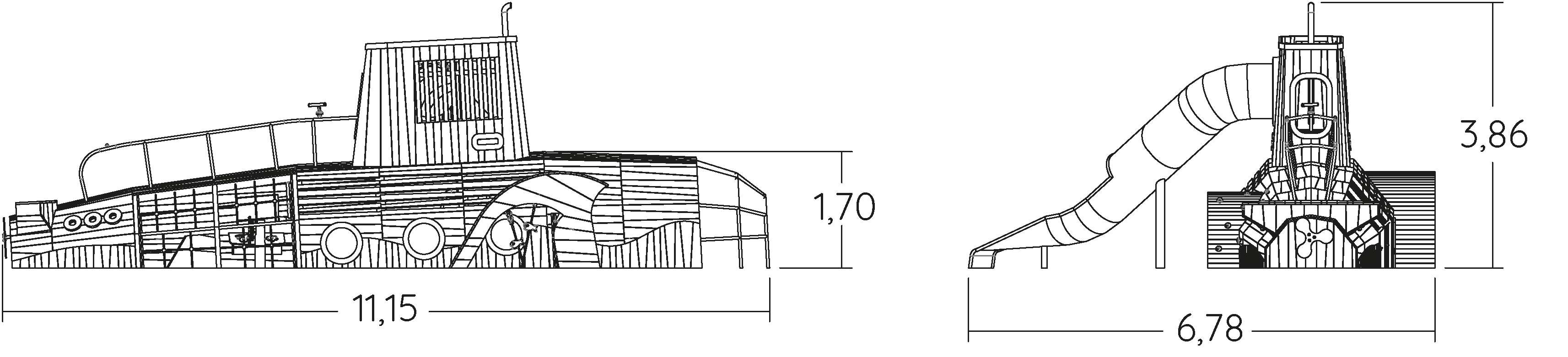 Wooden underwater multi-activity play structure with slide - Submarine - J49139®