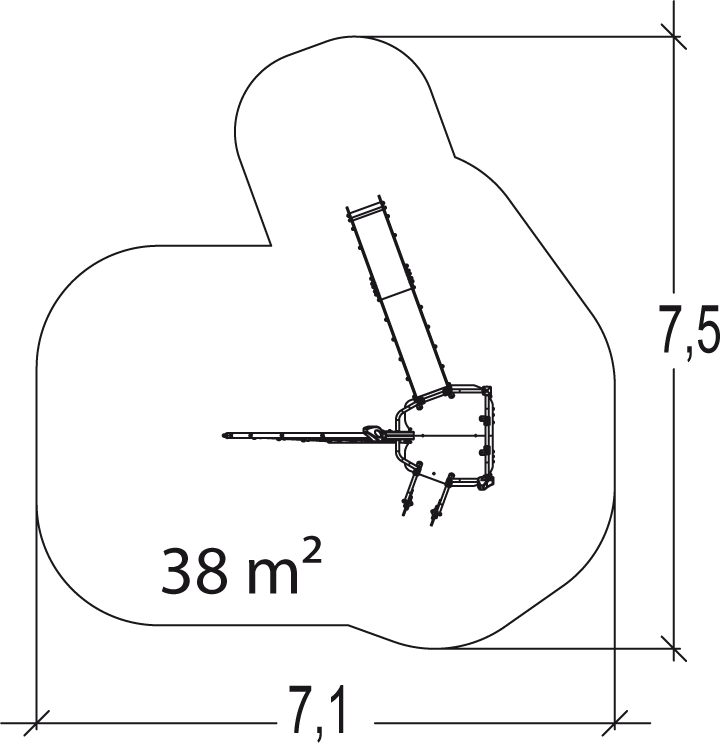The size of the module is: 4.04 m length, 3.26 m width, 3.22 m. high. The free fall height (FFH) is 2.70 m.
